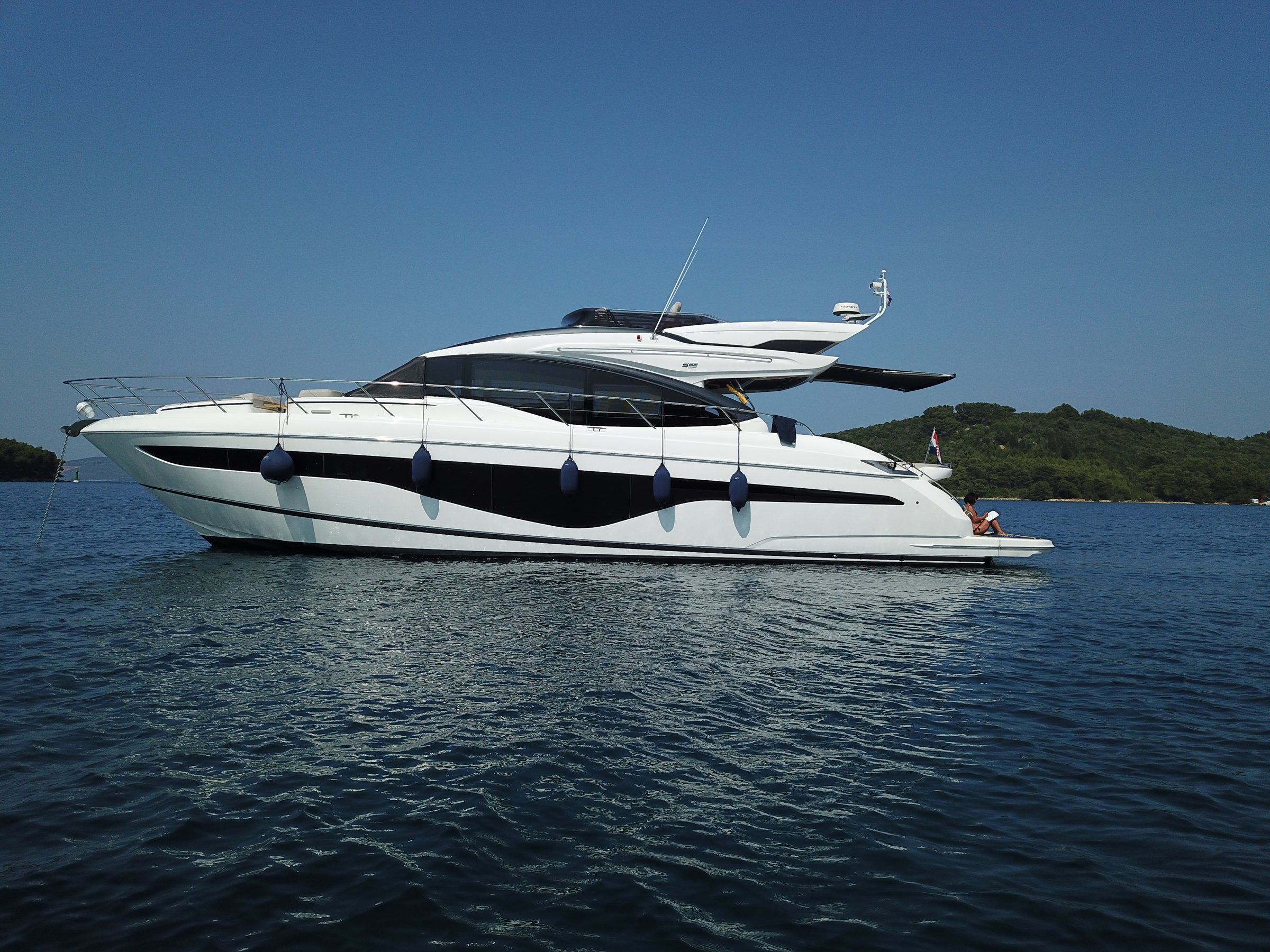 Experience the Dalmatian coast aboard a Princess S62 — a 19-metre sportbridge built for speed, space and quiet luxury. Skippered charters only — always with a professional captain, from our homeport in Rovinj, Istria.